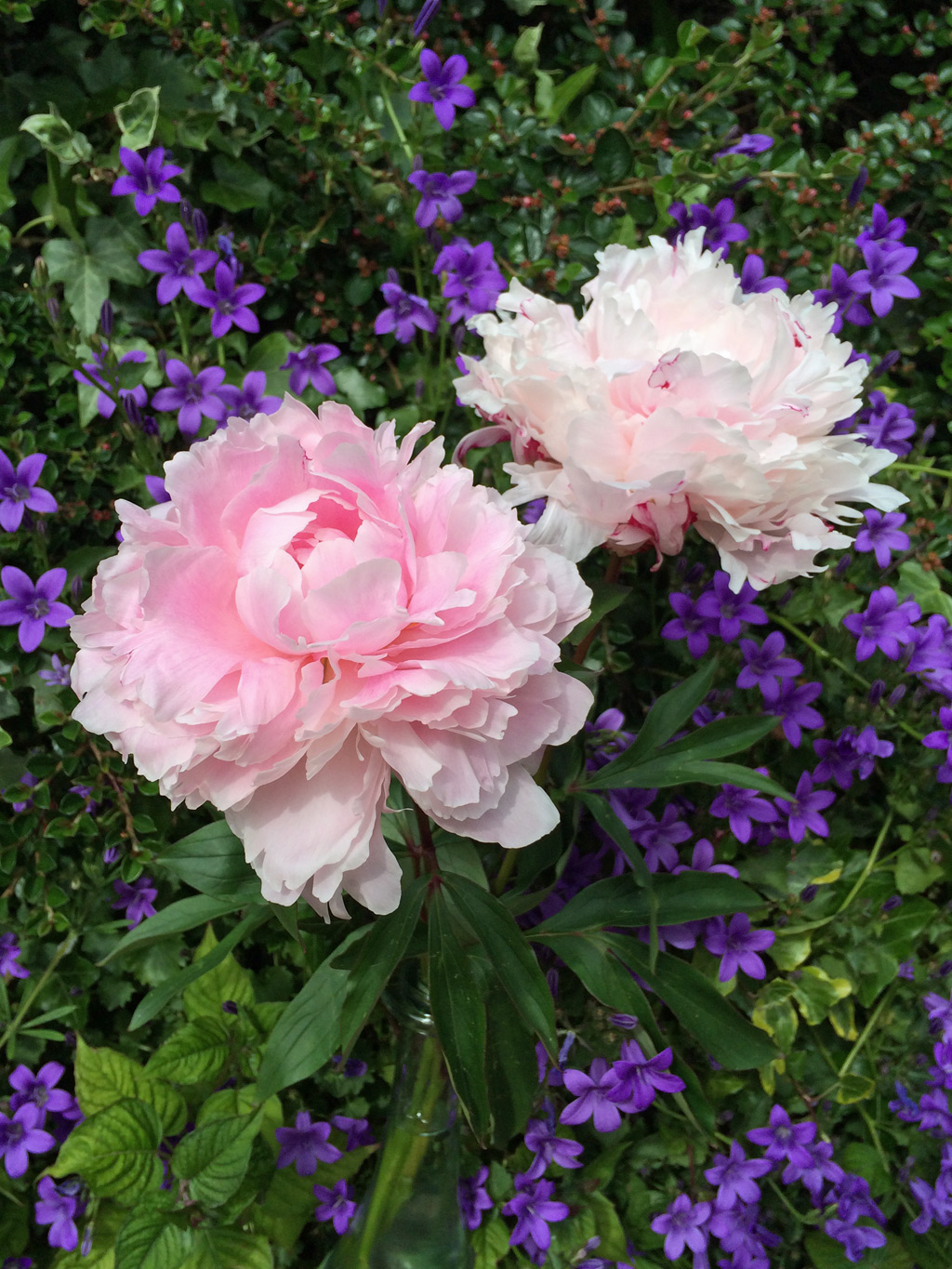 Peonies with a campanula backdrop
