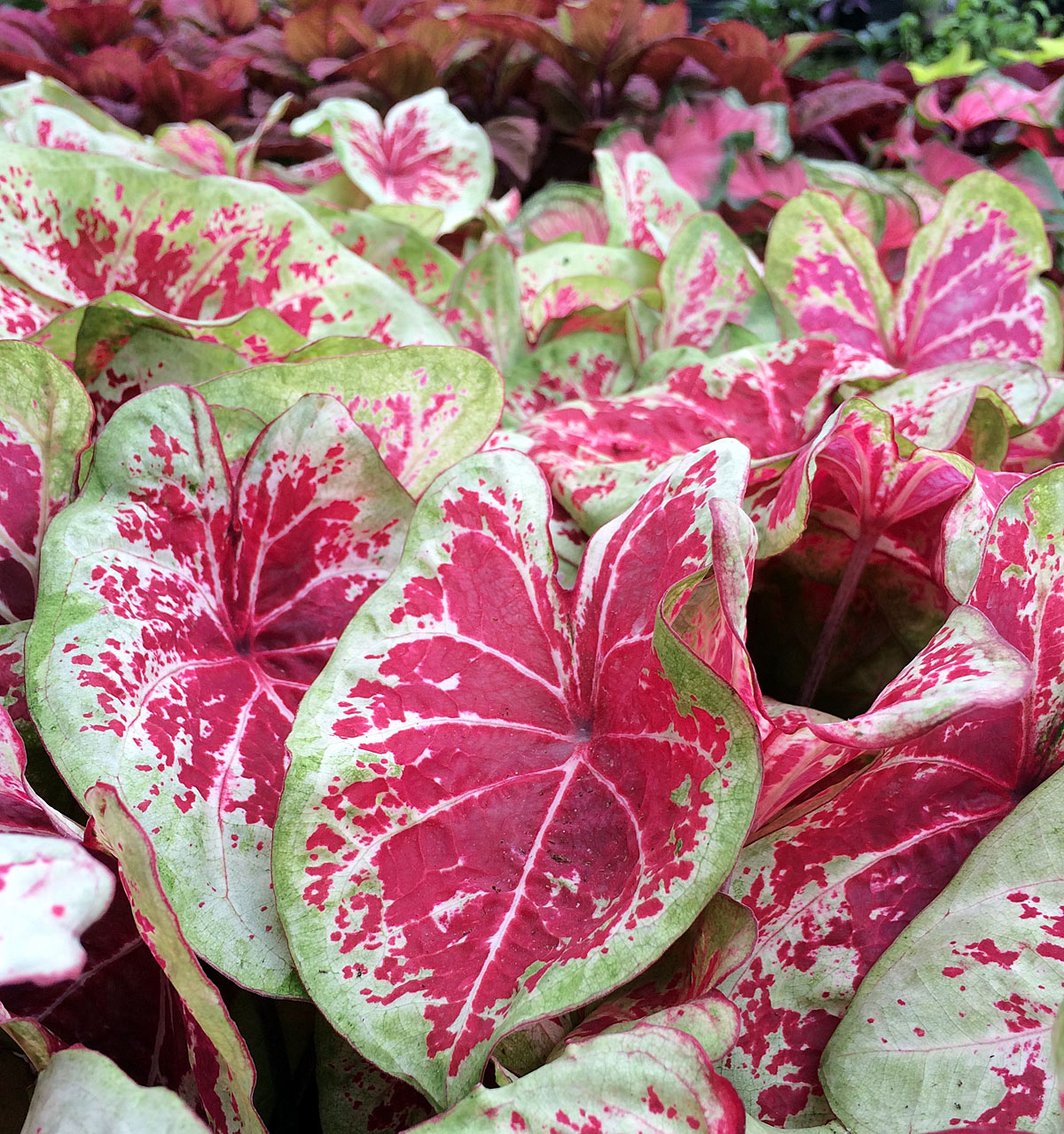 Red caladium leaves