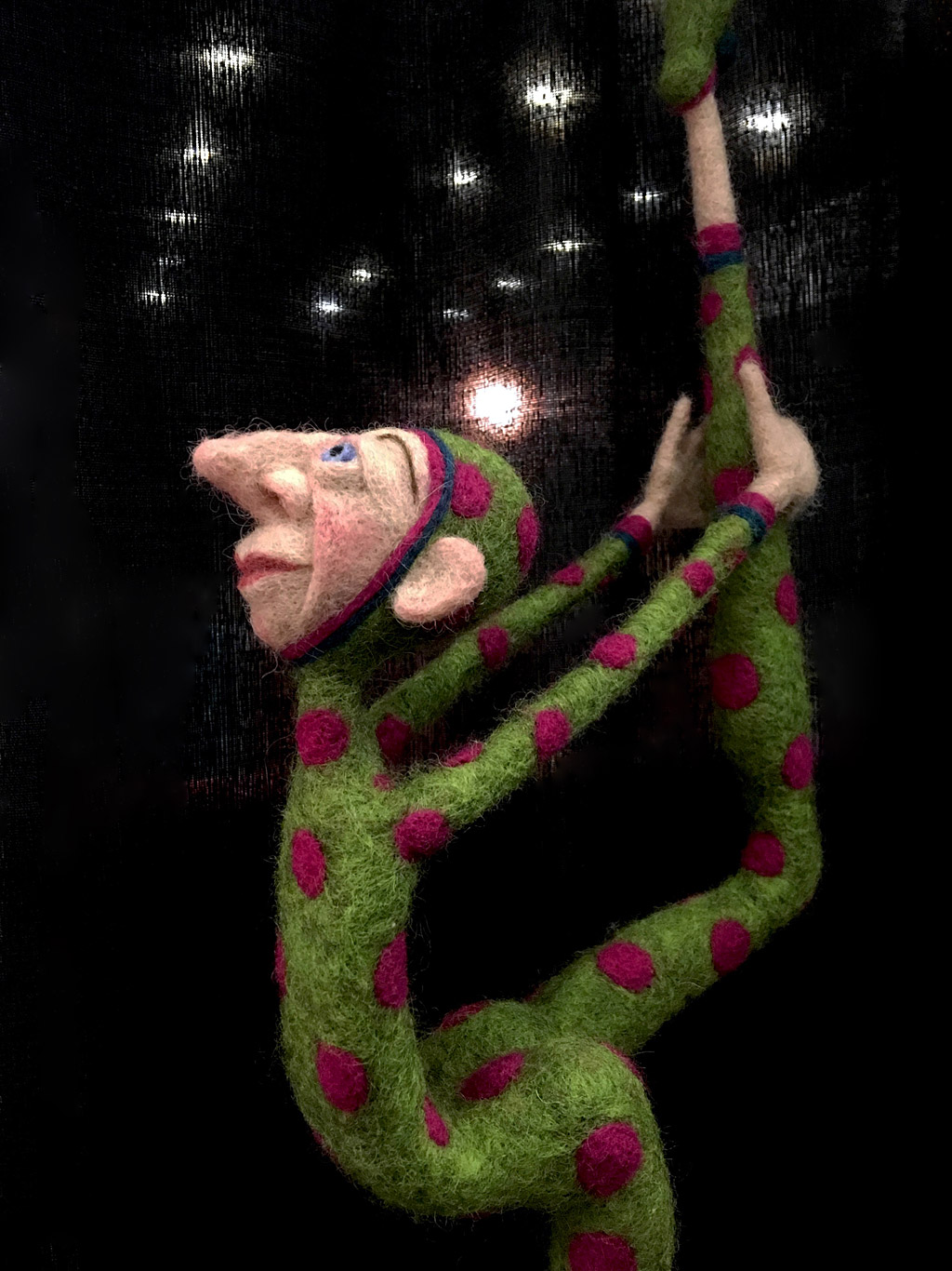 Felt Art: pink spotted circus acrobat by Debie Deaton
