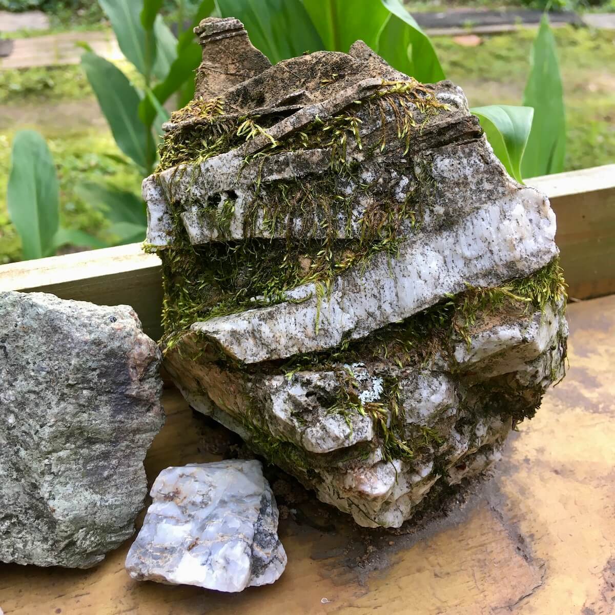 Layered rock with moss