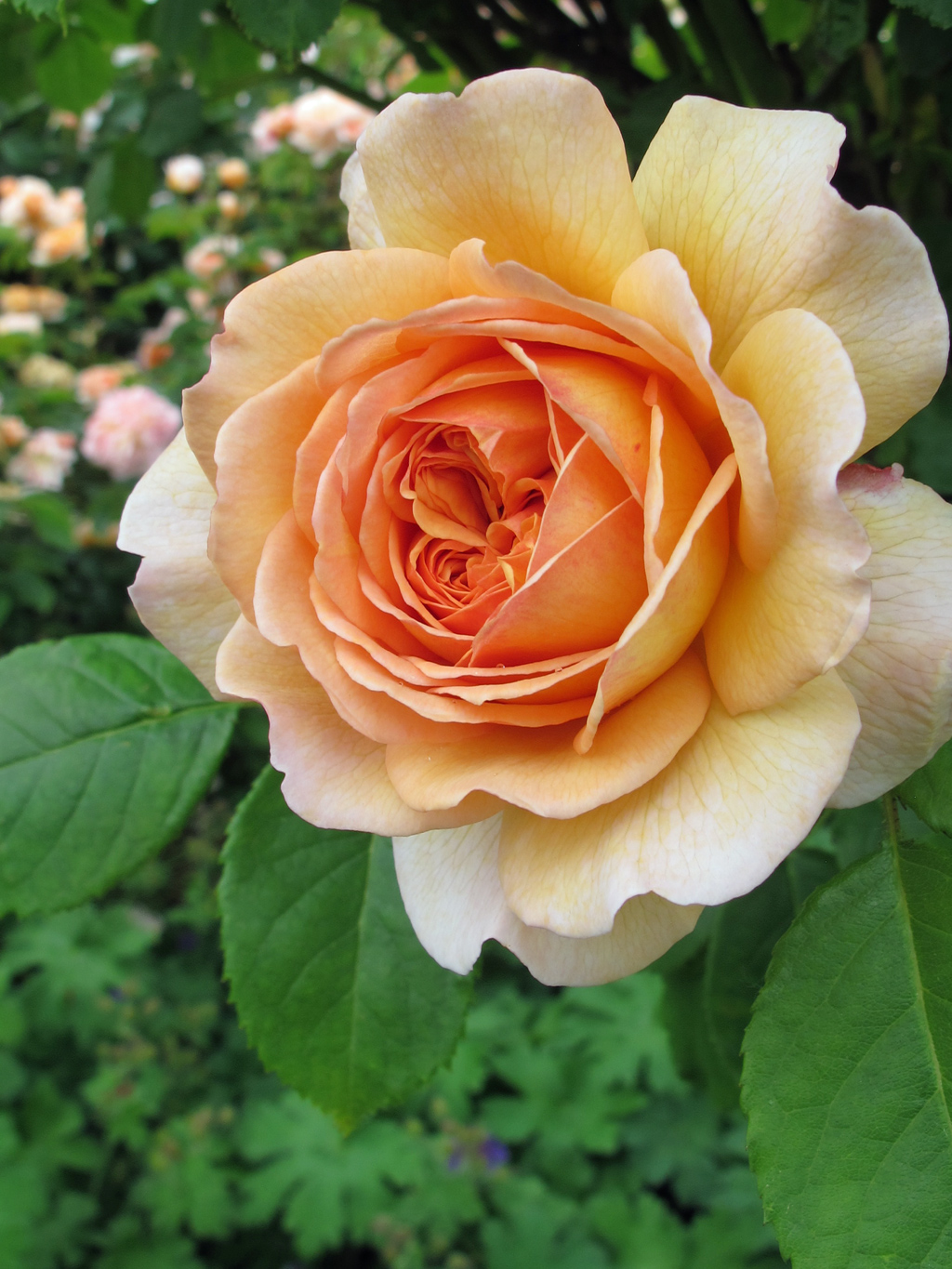 Orange rose – rosa ‘Grace’ being grown as a standard