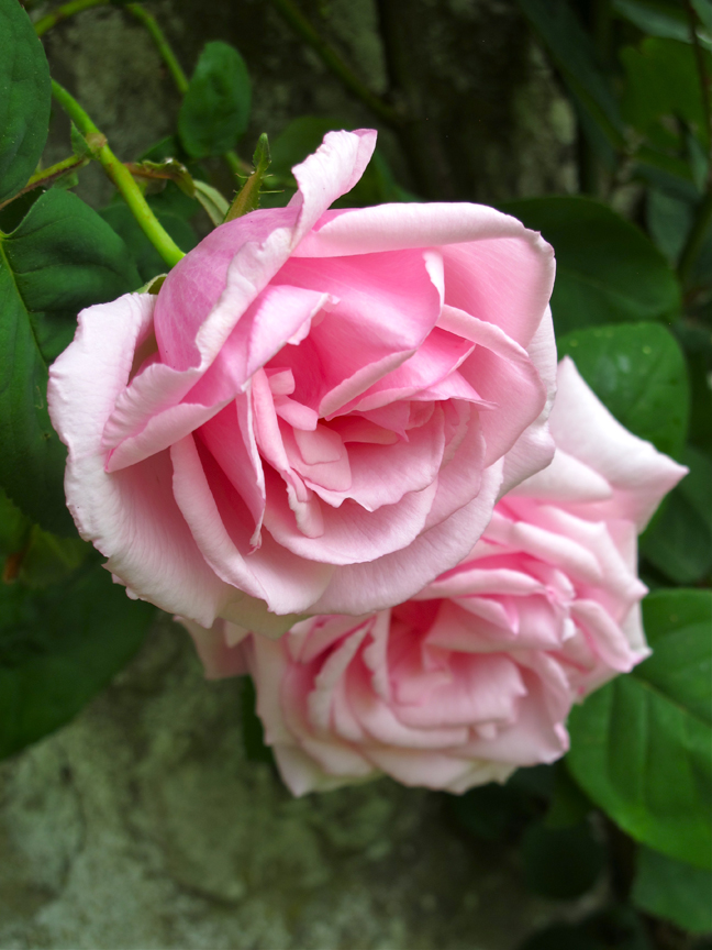 Pink roses on the wall of the kitchen garden at Gresgarth Hall