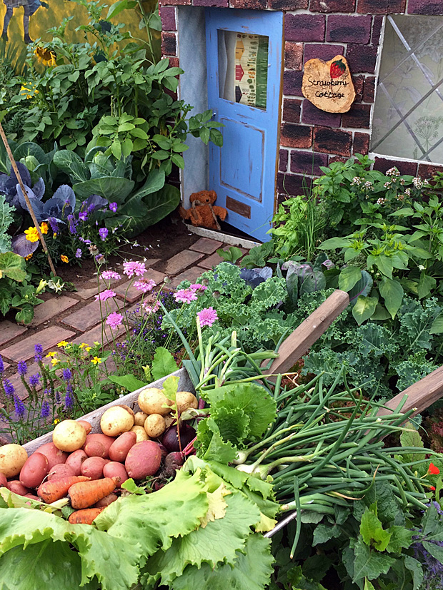 Vegetable garden and harvest in the Evelyn Dunbar Garden